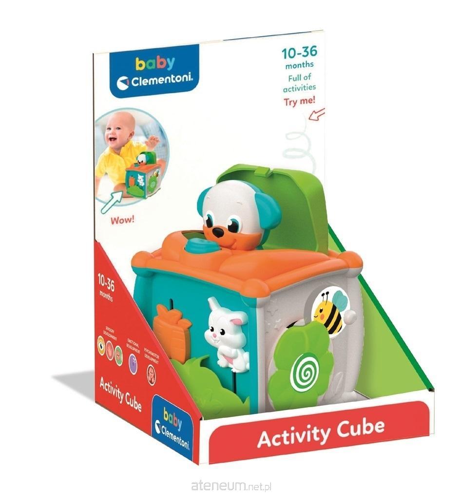 Kostka aktywności z wieloma czynnościami mechanicznymi. Zawiera aktywność z efektem Wow, którą można aktywować za pomocą przycisków, rolek, kół zębatych, itp. Zawiera też grzechotki i efekty dźwiękowe.