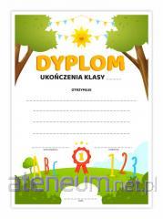Dyplom w formacie A4 (30cm x 21cm), wydrukowany na grubym papierze 300g.