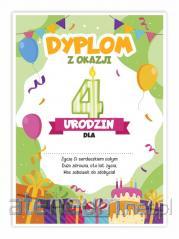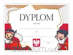 Dyplom w formacie A4 (30cm x 21cm), wydrukowany na grubym papierze 300g.