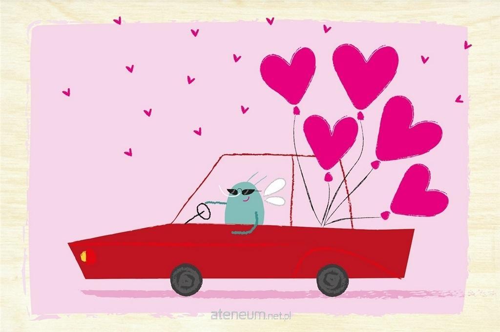 Drewniana kartka Walentynkowa - Różowa taksówka