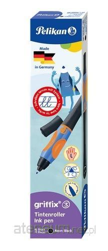Pióro kulkowe Pelikan Griffix to etap 3 w 4-stopniowym systemie nauki pisania stworzonym przez markę Pelikan. Po opanowaniu rysowania kredkami i pisania ołówkiem, dziecko jest gotowe na kolejny krok rozpoczęcie nauki pisania piórem. Na tym etapie dzieci nadal doskonalą chwyt szczypcowy, a jednocześnie zaczynają przyzwyczajać się do korzystania z narzędzia piśmienniczego z płynnym atramentem. Ponieważ młodsze dzieci mają tendencję do silniejszego naciskania na papier, pióro zostało wyposażone w specjalną końcówkę, która amortyzuje nacisk i umożliwia miękkie, płynne pisanie bez oporu. Widoczna uśmiechnięta buźka na korpusie podpowiada dziecku, że trzyma pióro prawidłowo. Ergonomiczny, trójkątny uchwyt pokryty został gumowaną powierzchnią, dzięki czemu dłoń się nie ślizga, a dziecko uczy się pisać w sposób wygodny i naturalny. Pióro działa na naboje atramentowe kulkowe, co czyni je czystym i łatwym w obsłudze.