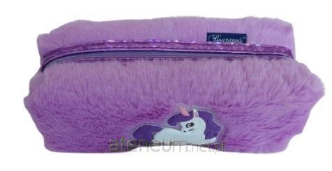 Piórnik z futerkiem oraz naszywką jednorożca. Posiada jedną komorę zapinaną na zamek. Doskonale nadaje się do szkoły.