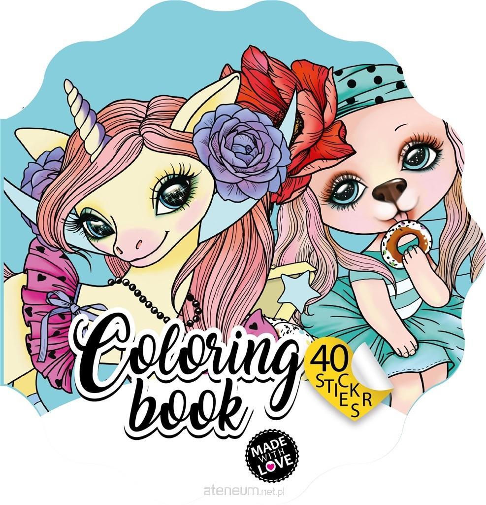 Kolorowanka dla dzieci w kształcie kwiatka, z magicznymi zwierzątkami. W zestawie 40 naklejek. Wyprodukowano na Ukrainie.