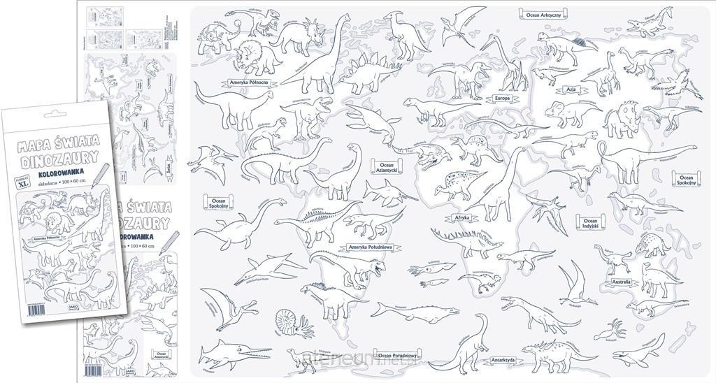 Ze składaną kolorowanką "Mapa świata. Dinozaury" dzieci mogą wyruszyć w fascynującą podróż do dawnego świata tych ciekawych stworzeń. Dowiedzą się przy tym, jakie gatunki zostały odkryte na poszczególnych kontynentach. Kredki w dłoń! Ogromny, ilustrowany arkusz prehistorycznego świata o wymiarach 100 x 60 cm jest do dyspozycji małego artysty.