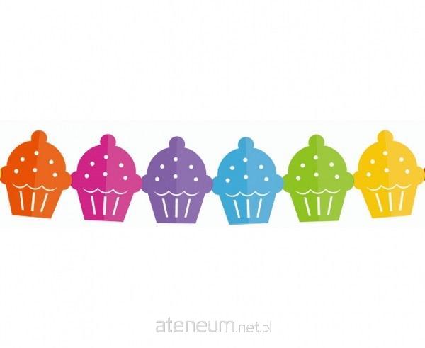 Kolorowa girlanda wykonana z papieru. Kolorowe babeczki połączone są ze sobą cienką, lecz wytrzymałą nitką. Girlanda jest dwustronna. Długość całkowita: 360 cm
