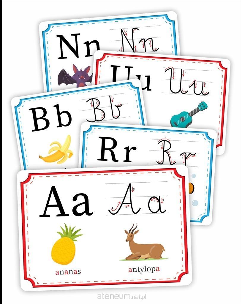 Literki pisane posiadają instrukcje krok po kroku jak je zapisać, dzięki czemu dziecko może wiele łatwiej przyswoić naukę pisania.