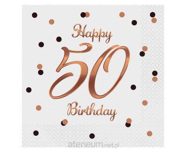 "SERWETKI PAPIEROWE NA 50 URODZINY Wymiary serwetek: 33 x 33 cm Kolor: biały, różowy, złoty Nadruk: napis Happy 50 Birthday Materiał: papier Ilość sztuk w opakowaniu: 20 "