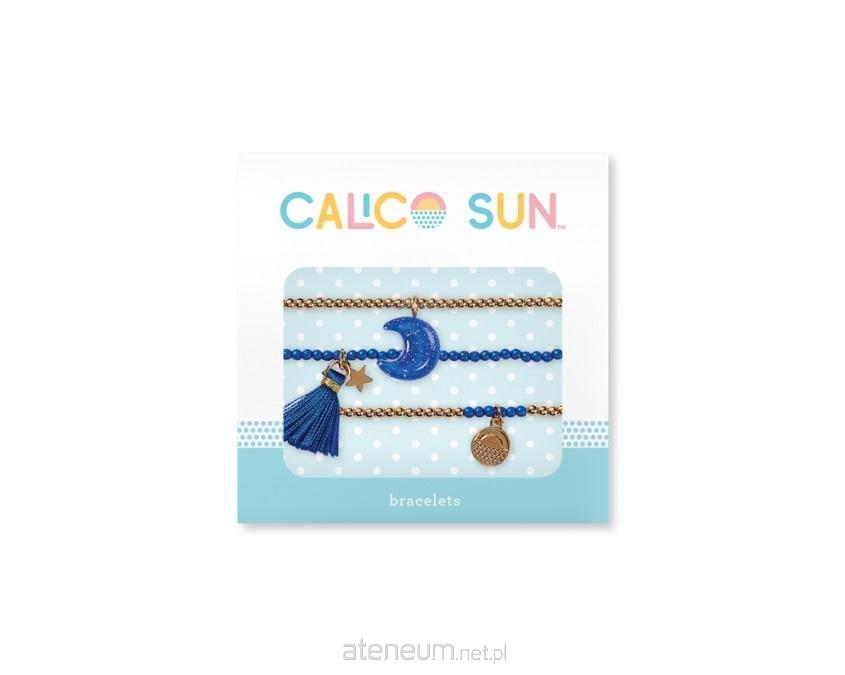 Zestaw bransoletek z koralików inspirowany jest kolorami nocy i blaskiem księżyca. Niebieskie i złote koraliki pięknie uzupełniają urocze zawieszki: błękitny księżyc, frędzelek i złotą zawieszkę z logo Calico Sun. Wszystkie 3 bransoletki są na elastycznych gumeczkach, łatwo się je zakłada i zdejmuje.