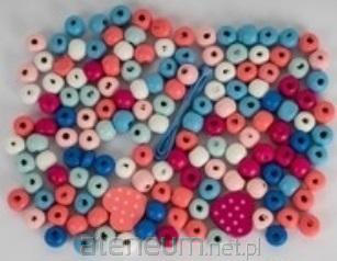 koraliki drewniane w różnych kształtach i kolorach, w zestawie sznurek