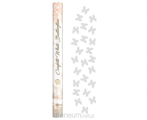 "Konfetti ""Białe Motylki"" Konfetti pneumatyczne do samodzielnego wystrzelenia Super atrakcja z okazji ślubu, wesela Materiał: papier Długość tuby: 60 cm"