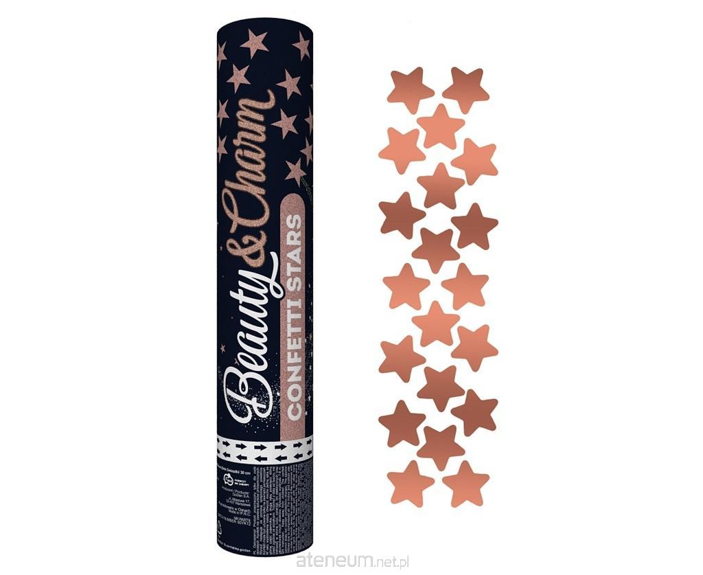 Konfetti tuba strzelająca GWIAZDKI, różowe złoto - 30 cm Kolor: różowe złoto Wzór: gwiazdki Ilość sztuk: 1 tuba strzelająca Długość tuby: 30 cm Kolekcja: Beauty&Charm Producent: Godan S.A. Po przekręceniu z tuby wylatuje konfetti tworząc widowiskowy efekt. Konfetti pneumatyczne nie zawiera ładunków pirotechnicznych. Wyrzut następuje za pomocą sprężonego powietrza. Produkt przeznaczony tylko dla osób dorosłych. Konfetti w kształcie gwiazdek w tubie z ekskluzywnej kolekcji Beauty&Charm to wyjątkowo wystrzałowa dekoracja! Przekręć strzelającą tubę i pozwól by oczarował Was złoto różowy deszcz wirujących gwiazdek. Mniej nie zawsze znaczy więcej, a strzelające tuby są tego najlepszym dowodem. Wystrzelcie na imprezie trzy lub nawet cztery tuby z konfetti w jednym momencie i przekonajcie się same.