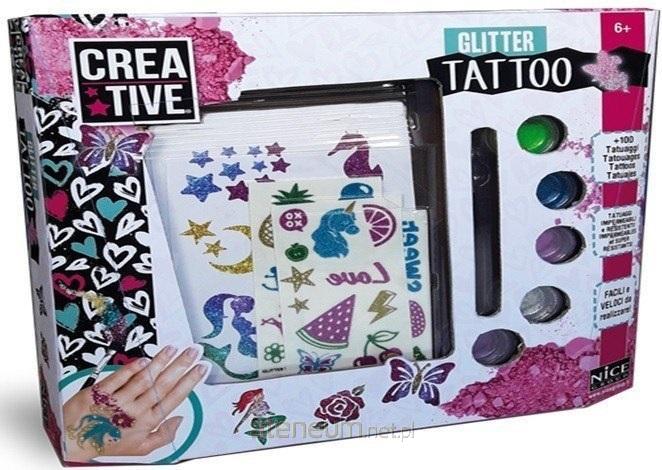 Super zestaw dla miłośniczek brokatu i zmywalnych tatuaży! Zmywalne tatuaże będą wspaniałą ozdobą podczas wakacji lub imprezy. W zestawie znajdują się półfabrykaty do stworzenia kolorowych błyszczących tatuaży lub ozdób na tkaninie.