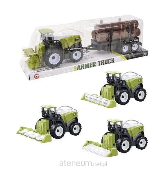Zabawka kombajn, z maszyną oraz z przyczepą którą można swobodnie montować i odmontowywać od pojazdu.