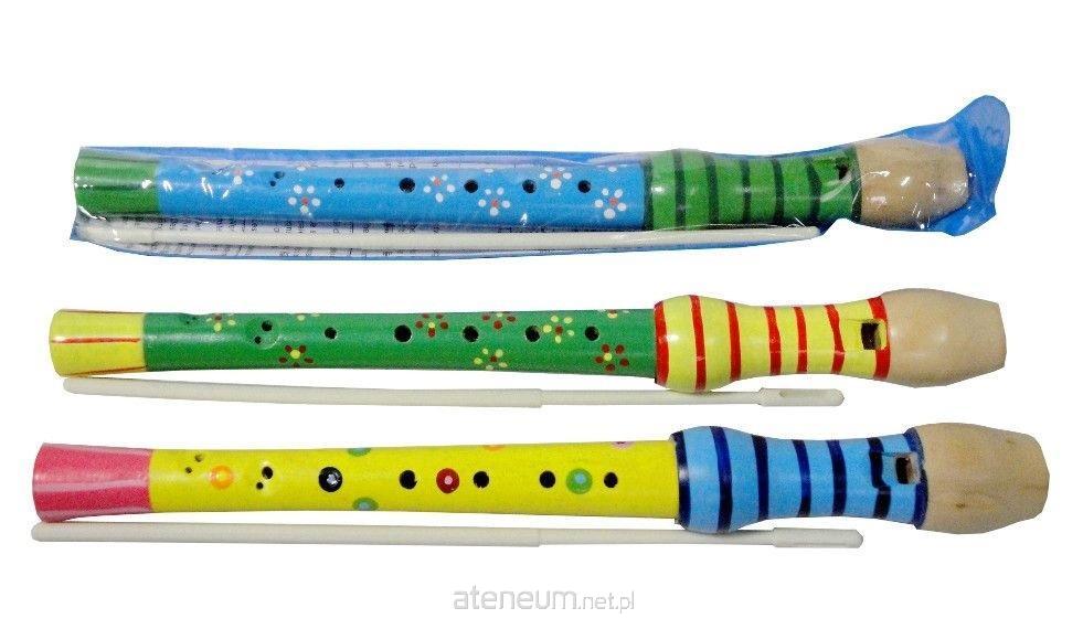 Kolorowy, drewniany flet wraz z patyczkiem do czyszczenia. Wewnątrz opakowania znajduje się również ulotka z podstawowymi chwytami.