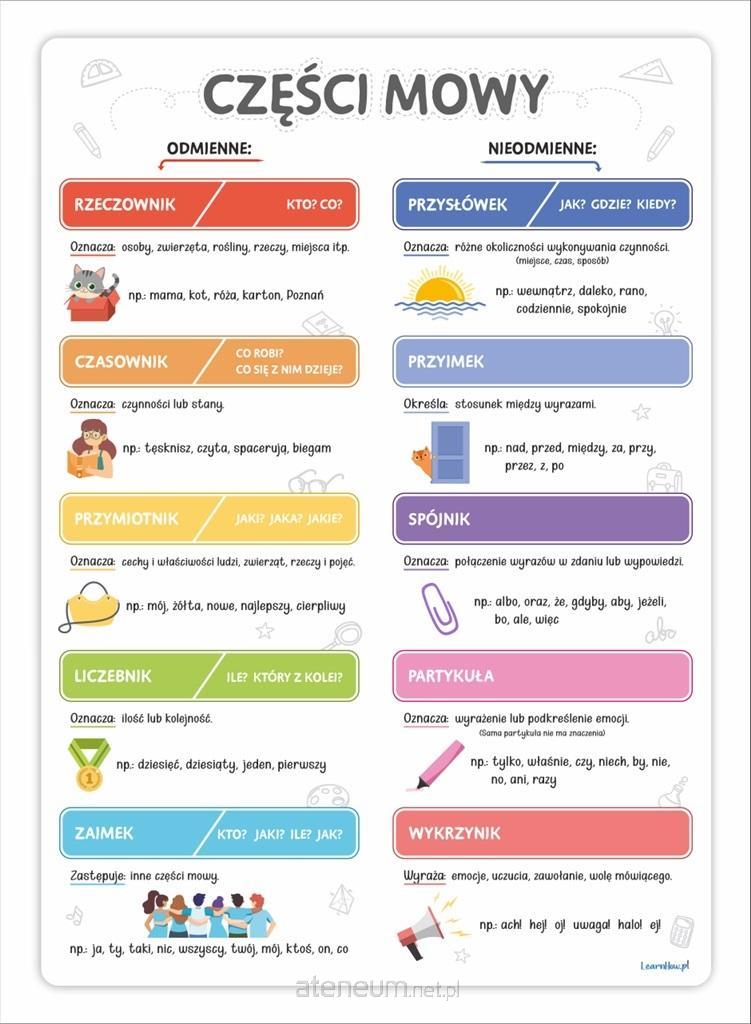 Świetny sposób na przypomnienie podstawowych zasad i przykładów Części Mowy.