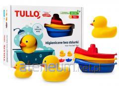 Mam kaczka i trójka jej dzieci to wspaniali towarzysze codziennej zabawy. Świetnie nadają się do wspólnej kąpieli z Twoim maluchem. Sprawią, że kąpiel stanie się ciekawa i pełna radości.