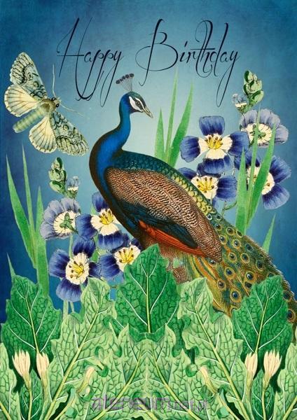 HB220 Karnet B6 z kopertą Urodziny Paw, wyprodukowany w Wielkiej Brytanii.
