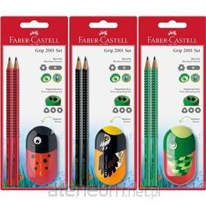 Zestaw na blistrze, podwójna temperówka z gumką Animal. Dwa ołówki Grip 2001.