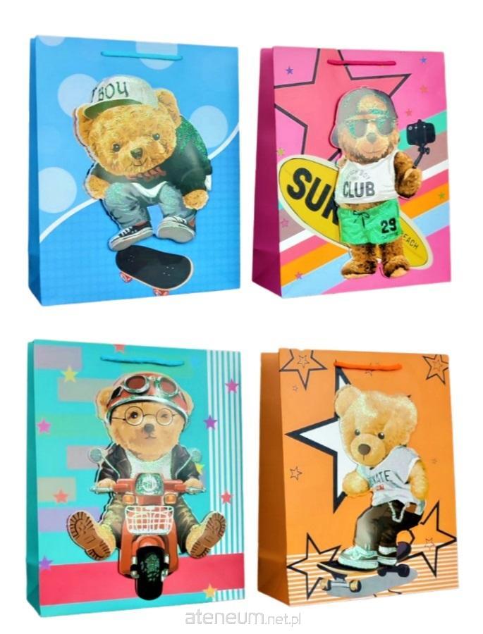 Torebka prezentowa dziecięca M miś z balonami mix