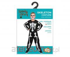Strój dla dorosłych. Strój zawiera: kombinezon i maskę. Rozmiar: Wymiary kombinezonu: Długość całkowita kombinezonu: ok. 154 cm (bez kaptura) Szerokość w ramionach: 55 cm Szerokość pod pachami: ok. 60 cm Długość rękawa: 65 cm Szerokość w pasie: ok. 47 cm bez rozciągania (Po rozciągnięciu ok. 79 cm). Długość nogawki: 81 cm Materiał: 100% poliester. Wymiary maski: Długość: 25,5 cm Szerokość: 16,5 cm Maska mocowana za pomocą gumki.