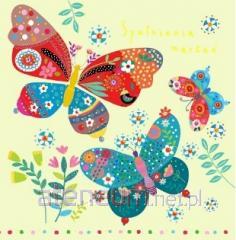 Karnet kwadratowy 15 x 15 cm z wyciętym kółkiem. Złocony i tłoczony, teksy życzeń w środku. Wydrukowany na wysokiej jakości papierze. W zestawie bilecik do prezentu oraz koperta.