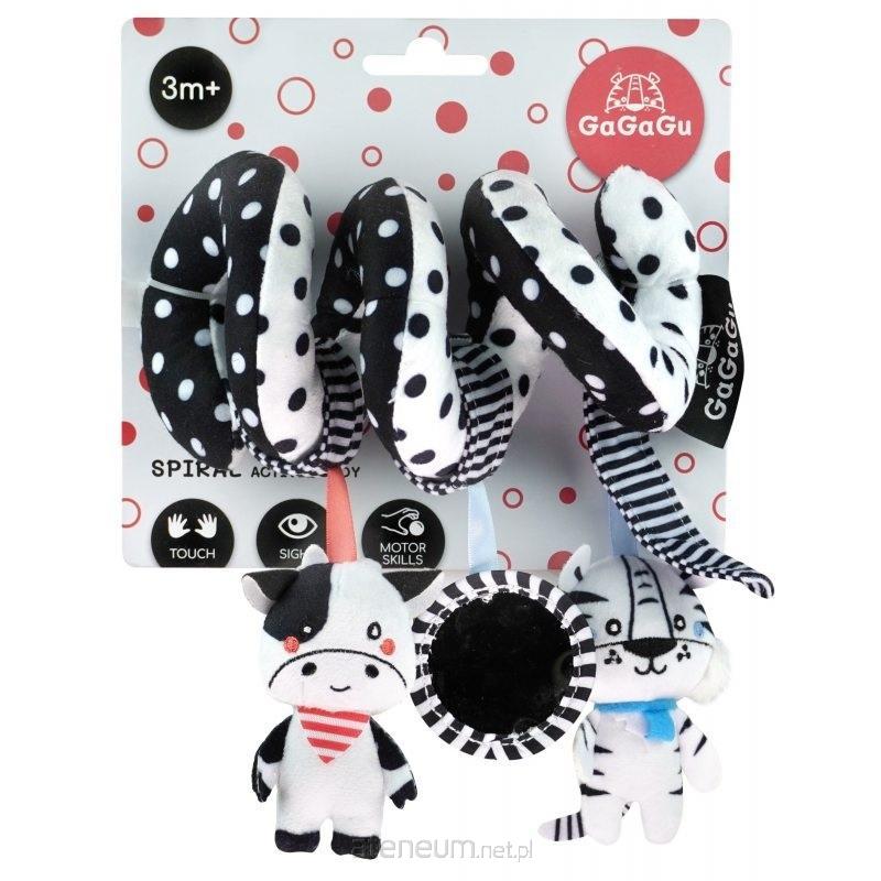 Pluszowa spirala z zawieszkami - Tygrys i Krowa jest zabawką utrzymaną w kontrastowej kolorystyce, co sprawia, że stymuluje zmysł wzroku niemowlaka. Pluszowe elementy zachęcają dziecko do chwytania, co rozwija tzw. małą motorykę, czyli ruchy paluszków i dłoni.