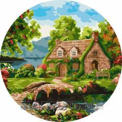 Malowanie po numerach okrągłe - Kwitnący dom 40cm