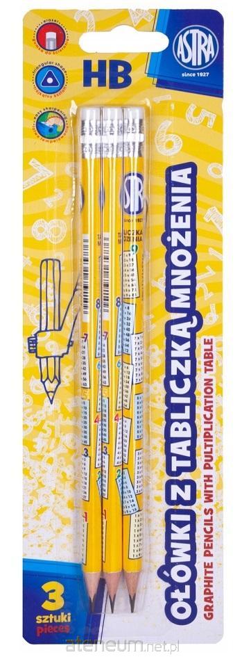 Ołówek z gumką i tabliczką mnożenia. Twardość HB. Idealna pomoc naukowa. Trzy sztuki na blistrze.