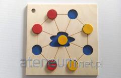 Plansze zawierają wzory o zróżnicowanym stopniu trudności i zmiennej tematyce. Zadaniem dziecka jest odtworzenie układanki według podpowiedzi w różnych wersjach: łatwej z uwzględnieniem podziału na kształty i kolory elementów, trudniejszej przy wykorzystaniu oznaczenia wyłącznie konturów klocków, najtrudniejszej dopasowując wielokąty na podstawie cienia całego obrazu. Pakiet zawiera plansze z wzorami o charakterze ogólnorozwojowym,. Zabawa może przybierać nieograniczoną ilość form: odtwarzanie wzorów, dopasowywanie brakujących elementów, tworzenie własnych motywów i wiele innych.