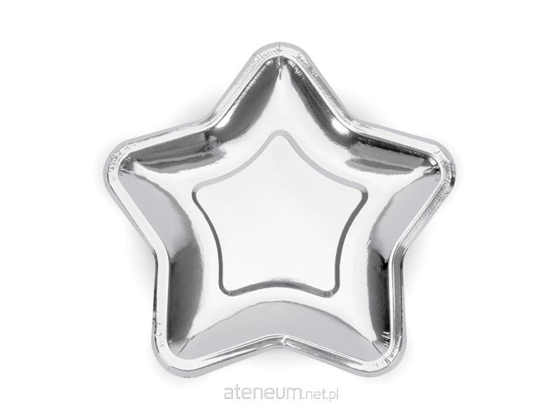 Talerzyki Gwiazdka wykonane z papieru metalizowanego w kolorze srebrnym, średnica około 18 centymetrów.(1 op. / 6 szt.)
