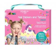 Super modne, kolorowe naklejki na paznokcie i tatuaże w przepięknych wzorach księżniczek. W zestawie 3 duże arkusze z 260 naklejkami i tatuażami. Łatwe w użyciu i usuwaniu.
