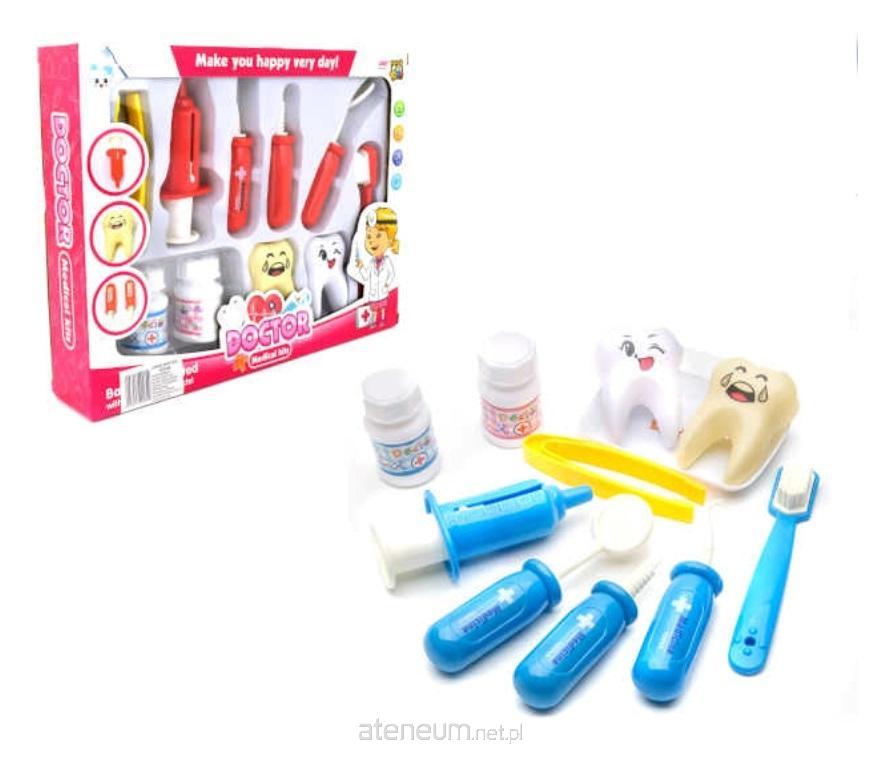 Zestaw Dentysta składa się z zębów, smutnego i wesołego, szczoteczki, narzędzi dentystycznych oraz fiolek leków. Zestaw zawiera 11 elementów.