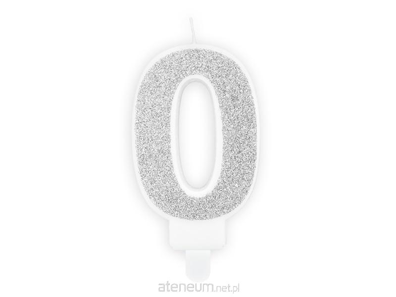Świeczka urodzinowa Cyferka 0 w kolorze srebrnym brokatowym, rozmiar ok. 7 cm.
