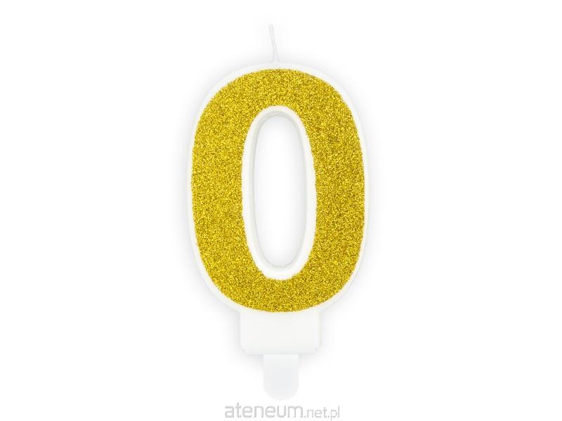 Świeczka urodzinowa Cyferka 0 w kolorze złotym brokatowym, rozmiar ok. 7 cm.