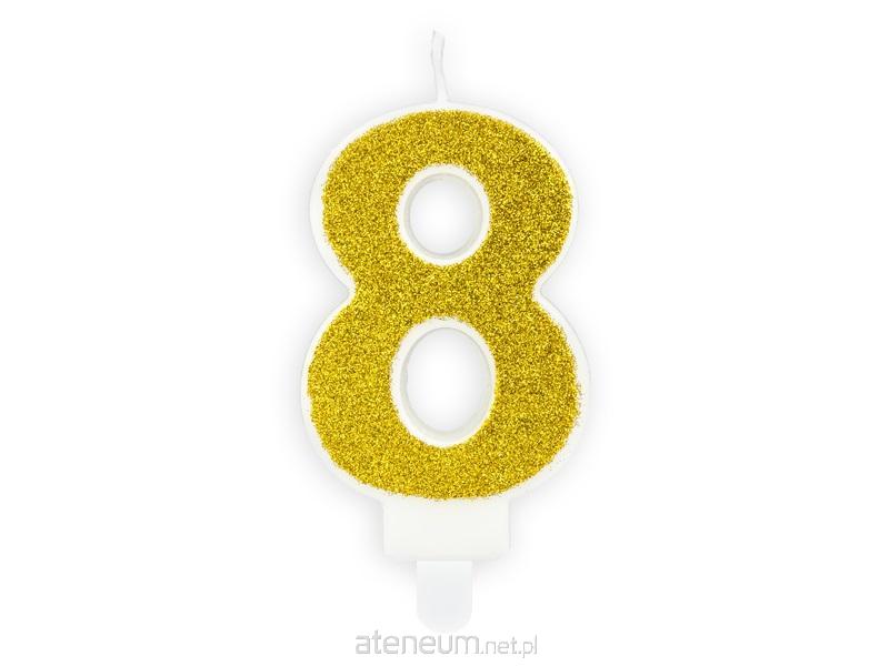 Świeczka urodzinowa Cyferka 8 w kolorze złotym brokatowym, rozmiar ok. 7 cm.