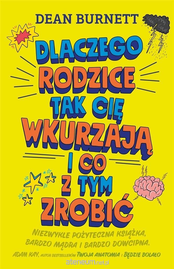 Relacje pomiędzy rodzicami i dziećmi bywają bardzo napięte. Doświadczyłeś sytuacji, gdy Twoi opiekunowie zachowywali się, Twoim zdaniem, kompletnie irracjonalnie? Wkurzają Cię ich zakazy i nakazy, którym musisz się podporządkować, choć wcale tego nie chcesz? Przeczytaj książkę Deana Burnetta Dlaczego rodzice tak cię wkurzają i co z tym zrobić? Być może dzięki niej zrozumiesz dziwne zachowania swoich opiekunów. Czym kierują się Twoi rodzice? Nastolatki często nie wiedzą, co motywuje ich rodziców do takiego, a nie innego zachowania. Dlaczego nie możesz dogadać się z mamą lub tatą? Neurobiolog światowej sławy, Dean Burnett, postara się odpowiedzieć na tego typu pytania w swojej publikacji. Atutem książki Dlaczego rodzice tak cię wkurzają i co z tym zrobić jest to, w jaki sposób została napisana. Dzięki humorystycznemu językowi autor w przystępny sposób przekaże Ci wyniki najnowszych badań z dziedziny psychologii i psychiatrii. Poznaj odpowiedzi na nurtujące Cię pytania! W tej książce Dean Burnett zebrał wiele istotnych informacji o tym, dlaczego rodzice zachowują się tak, a nie inaczej. Postaraj się lepiej zrozumieć swoich staruszków i popraw z nimi relacje dzięki lekturze książki Dlaczego rodzice tak cię wkurzają i co z tym zrobić?