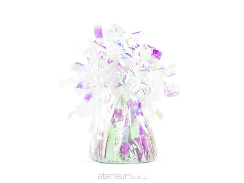 Ciężarek do balonów owinięty folią w kolorze opalizującym, wysokość ok. 7 cm, waga ok. 130 g.(1 op. / 4 szt.)