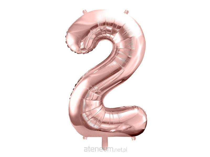 Balon foliowy metalizowany Cyfra ''2'' w kolorze różowego złota, rozmiar przed napompowaniem ok. 100 cm (39''), rozmiar po napompowaniu ok. 86 cm (34''). Do napomowania powietrzem i helem.