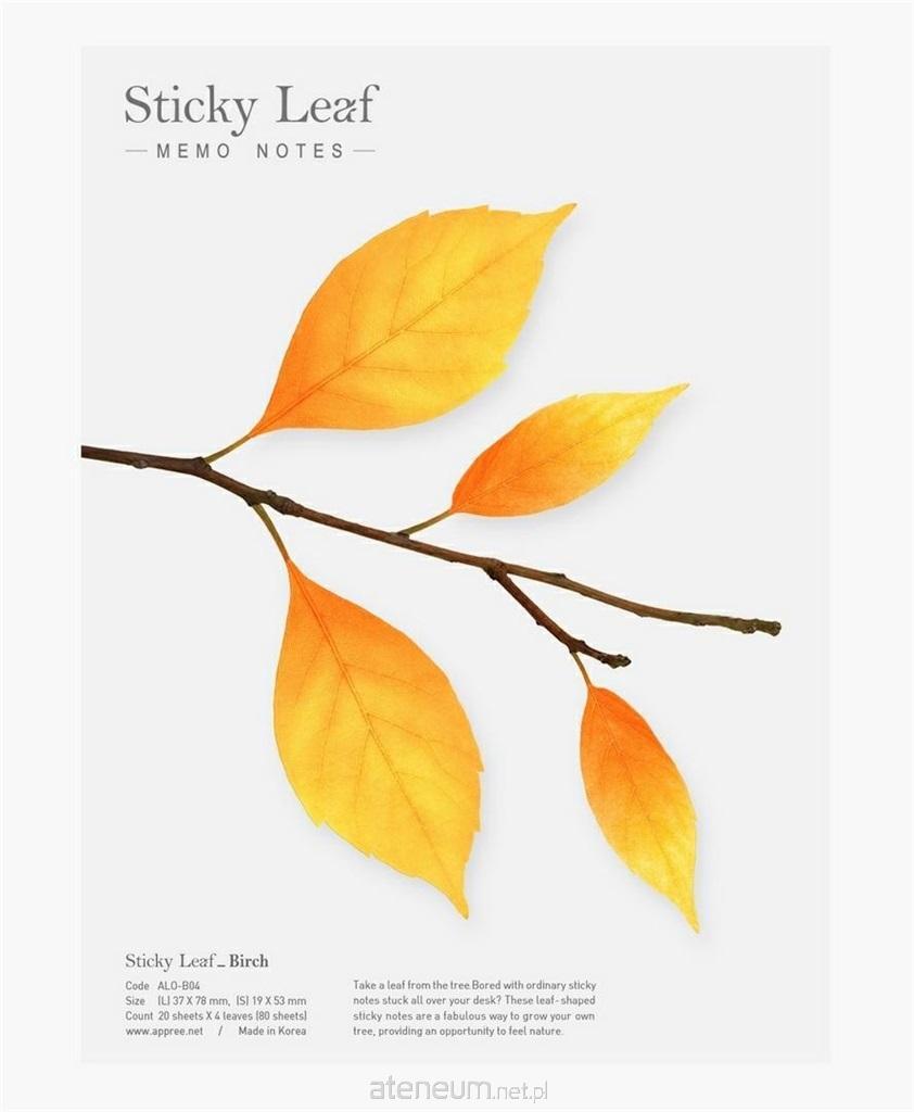 Karteczki samoprzylepne indeksujące w kształcie liści brzozy. Każdy listek papieru jest samoprzylepny, dzięki temu znajdzie zastosowanie jako klasyczna kartka do notatek oraz jako zakładka indeksująca. Wykorzystasz je w domu, biurze, w planerach, książkach. W fantastyczny i kreatywny sposób można je również wykorzystać do scrappbookingu oraz bullet journalingu.
