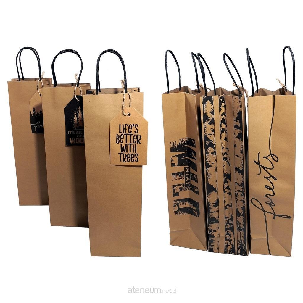 Torebka B FOREST z papieru kraft z elegancką przywieszką, rączki ze skręconego czarnego papieru, mix wzorów wysyłany losowo.