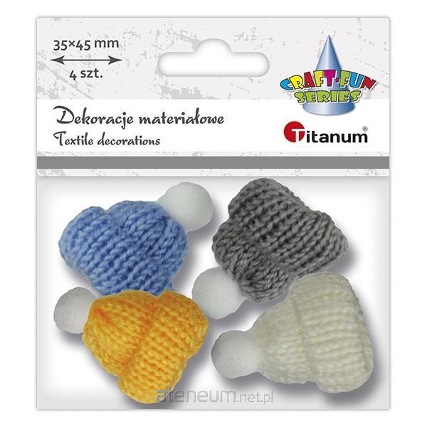 Czapeczki włóczkowe 35x45mm z białym pomponem biała, szara, niebieska, żółta 4szt.