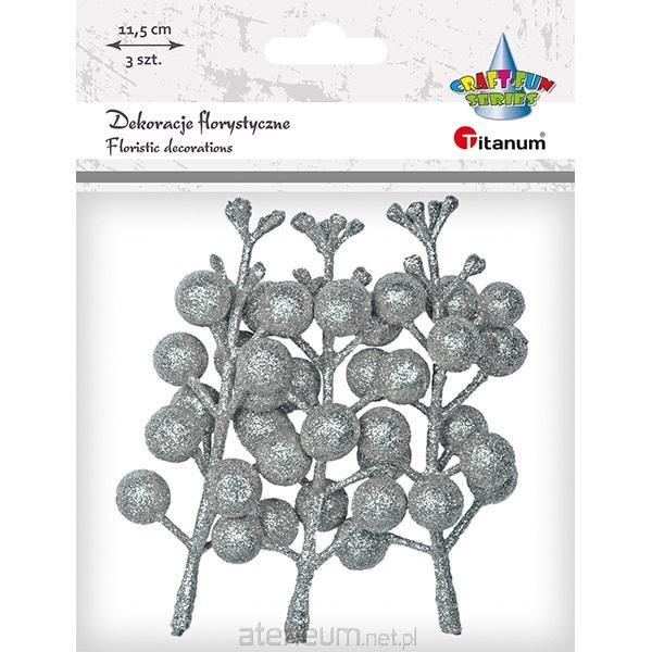 Gałązki owoców winobluszczu 45x105mm srebrne brokatowe 3szt.