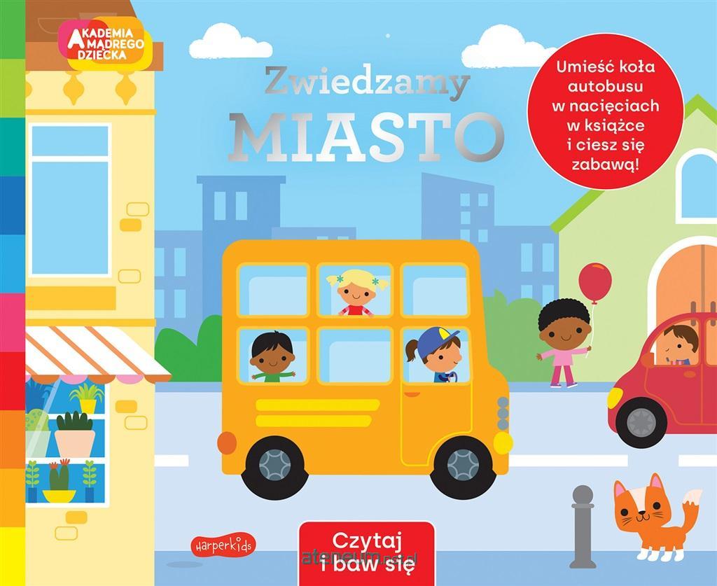 Zwiedzamy miasto to filcowo-kartonowa książeczka w nowej serii Akademii Mądrego Dziecka Czytaj i baw się. Książeczka opowiada o tym jak wygląda życie w mieście. Zwiedzamy je razem z autobusem, który dołączony jest do książeczki na tasiemce. Autobus musimy wyciągnąć z okładki i postawić w odpowiednich nacięciach na środku pierwszej strony. Dzięki wycięciu w stronach autobus jedzie z nami przez kolejne strony książeczki. Razem z nim jedziemy ulicą miasta mijając domy, dzieci, i inne samochody. Mijamy park w którym dzieci bawią się na zjeżdżalni oraz przejeżdżamy przez tunel. Na każdej stronie mały czytelnik ma krótkie pytanie wymagające pokazania lub policzenia. Książeczka zachęca do wspólnej zabawy, duże, lekkie strony są idealne dla małych rączek do oglądania i przekładania, a stojący pojazd umili zabawę i wspólne czytanie.