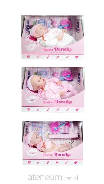Gumowa lalka Dorotka wraz z akcesoriami: pieluszką, śliniaczkiem, butelką i miseczką z łyżeczką. Lalka interaktywna śpiewa piosenki: "Pieski małe dwa", "Jesteśmy jagódki", "My jesteśmy krasnoludki", oraz mówi, wita się, prosi żeby ją przytulić i ukołysać.