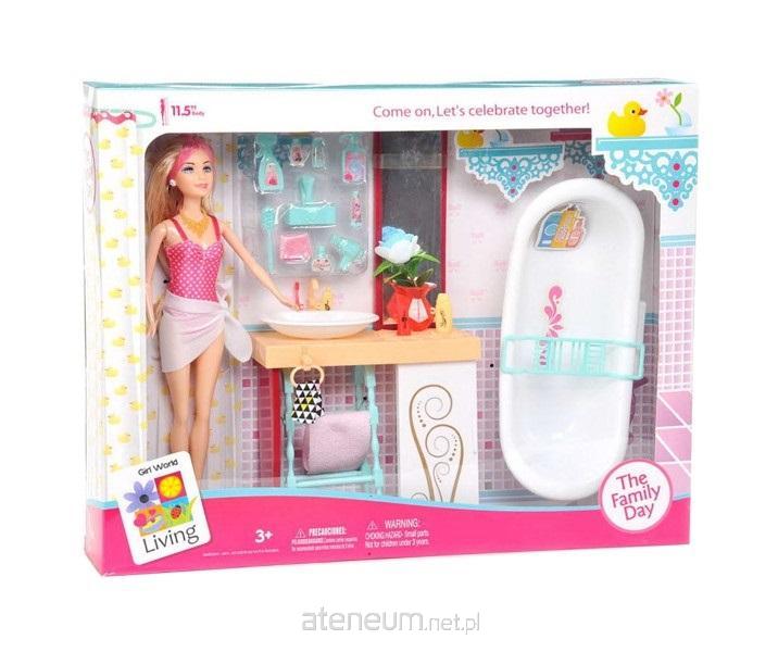 Lalka (typu Barbie) z mebelkami łazienkowymi jak: wanna, umywalka, a także innymi akcesoriami: szczotka, suszarka, ręcznik, butelka szamponu, balsamu. Produkt zapakowany w kartonowe opakowanie z przezroczystym okienkiem. Zabawka dla dzieci od 3 lat.