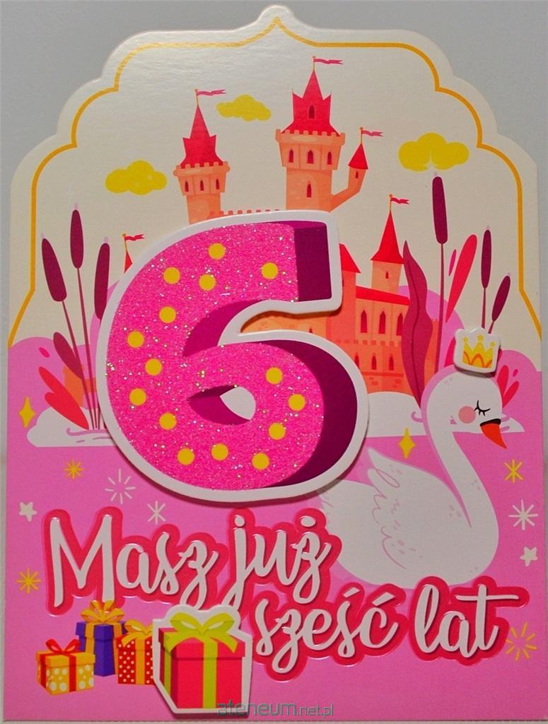 Karnet B6 brokat z kopertą Urodziny 6 dziewczynka