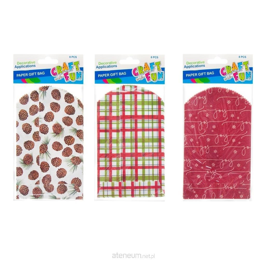 Zalety produktu: idealne na małe świąteczne prezenty, występują w miksie wzorów i kolorów. Święta za pasem, więc warto pomyśleć o pakowaniu świątecznych prezentów. Torebki ozdobne od CRAFT WITH FUN wykonane z papieru to fantastyczny sposób na pakowanie prezentów by sprawić radość swoim najbliższym. Używaj tych produktów w połączeniu z innymi akcesoriami z serii CRAFT WITH FUN lub z innymi kompletami z serii.