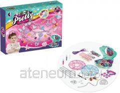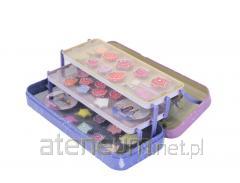 Zestaw kosmetyków dla dzieci. Zapakowane w metalowe etui metalowym etui. Zestaw zawiera; 3 kremowe cienie do powiek, 6 błyszczyków.