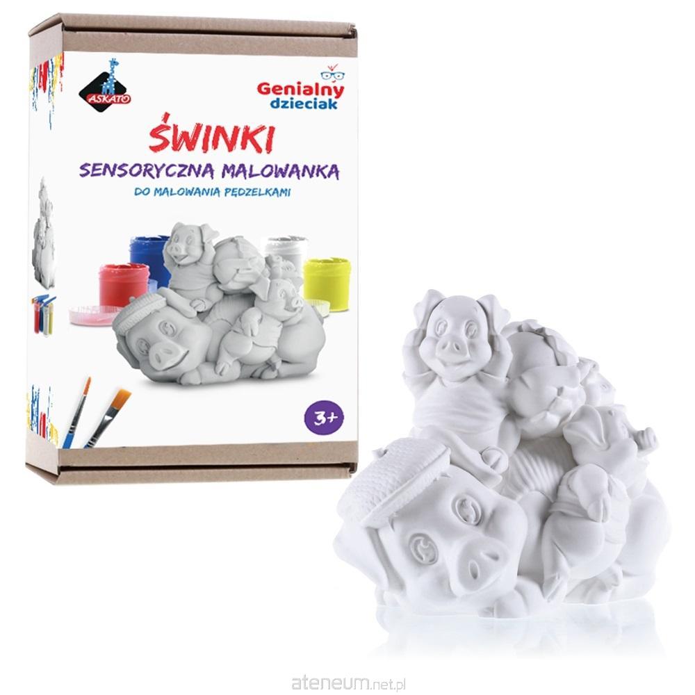 Figurka gipsowa- ŚWINKI z zestawem farbek i pędzelkiem. Zabawy plastyczne są nie tylko świetną zabawą, ale doskonale wpływają na rozwój dzieci. Nasze modele gipsowe zostały zaprojektowane specjalnie pod kątem integracji sensorycznej dzieci, dlatego już na etapie projektowania modeli główny nacisk został położony na różnorodność faktur (gładka, śliska, szorstka) oraz na zagłębienia i wybrzuszenia, dzięki którym dziecko doświadcza wielorakich bodźców wzrokowo-dotykowych, czym poszerza świat swoich doznań. Taka zabawa doskonale rozwija koordynację oko-ręka. Malowanie ćwiczy jednocześnie motorykę małą, uczy koncentracji oraz pobudza wyobraźnię i kreatywność. Malując figurkę dziecko ma możliwość popuścić wodze fantazji i nie ograniczać swojej wyobraźni. W ten sposób figurka nabierze indywidualnego charakteru i będzie unikatową pamiątką z tego okresu rozwoju dziecka.
