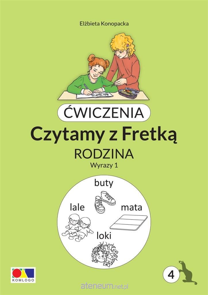 Czwarty zeszyt z serii Czytamy z Fretką ćwiczenia. Znajduje się w nim 120 różnych zadań dotyczących czytania wyrazów złożonych z sylab otwartych oraz zdań zbudowanych z takich wyrazów. Wykonując proponowane aktywności, dziecko ma również możliwość rozwijania kompetencji językowej i komunikacyjnej oraz ćwiczenia małej i dużej motoryki.